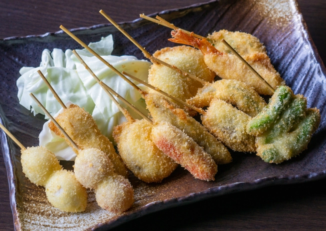 「丸得酒場 とくとく弁天町波除店」提供【平價海鮮】、【串炸】與【餃子】,是三五好友暢快聊天的最佳選擇。